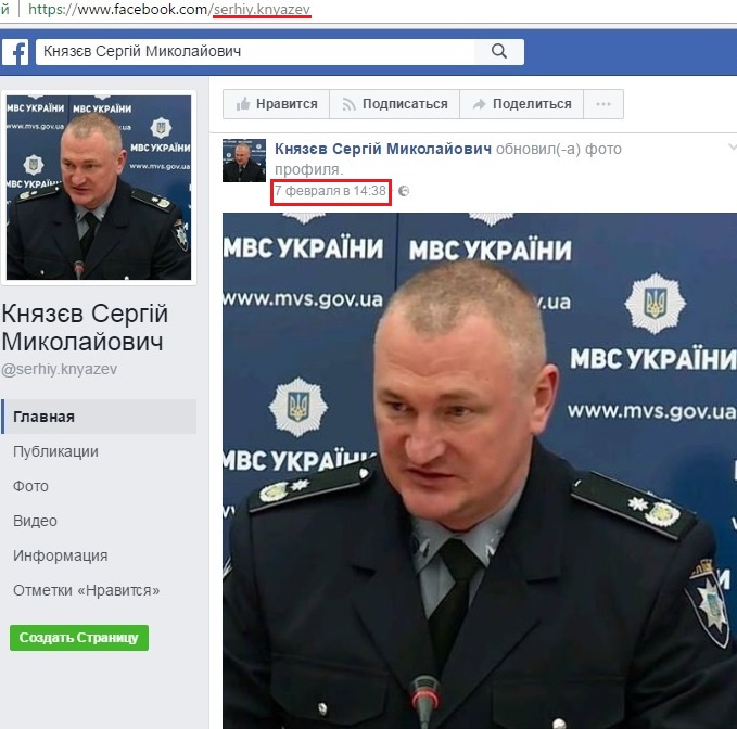 Тем не менее, с 7 февраля 14.38 обновляется фан-страница государственного служащего Сергея Князева. Получается, что и эта страница главы Нацполиции тоже фейковая? Заметим, что пока что на этой странице только 90 поклонников и 110 подписчиков. Информация на странице обновляется регулярно.
