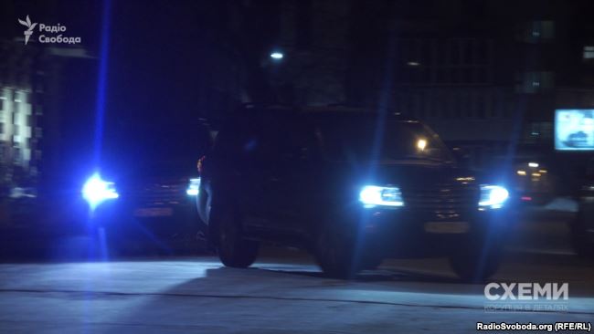 Автомобілі мають номери, яких, за даними джерел «Схем», немає у базі поліції. Згодом цей кортеж заїжджає у ворота Центрального управління Служби безпеки України.