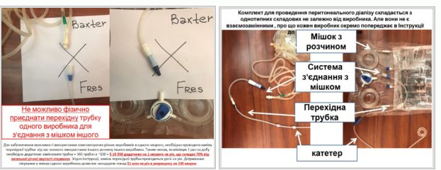 Разом з тим, препарати «Бакстера» і «Фрезеніуса» мають різні за конфігурацією і розмірами перехідники, які приєднуються до цих трубочок. Відтак фізично неможливо приєднати німецький пакет до американської трубочки пацієнта.