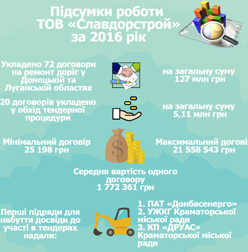 За підсумками 2016 року ТОВ «Славдорстрой», якому тоді було трохи більше року з часу реєстрації, із новоствореної фірми перетворився на одного з гігантів ринку будівництва доріг у Донецькій та Луганській областях.