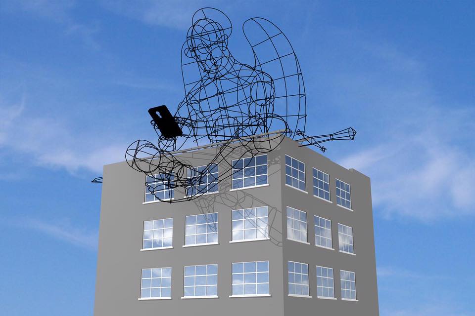 Еще в прошлом году мы затеяли установить ангела с мобильным телефоном в руках на крыше завода «Стальканат» в Одессе. Он готов на 90 процентов. Загвоздка только в том, что завод не успел подготовить фасад, поэтому мы сидим и ждем, пока определятся с подрядчиками.