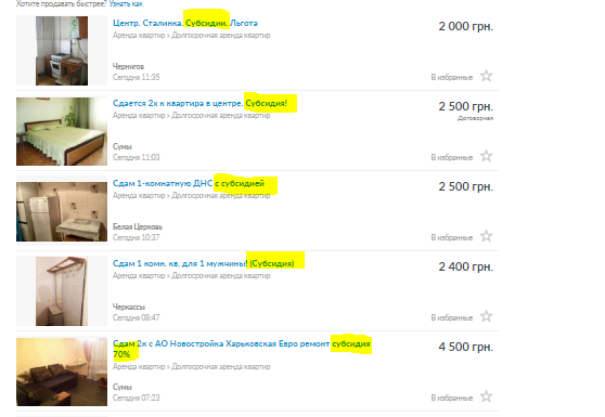 Еще одно распространенное нарушение – украинцы оформляют скидки на жилье, которое сдают в аренду. По закону, оформить скидку можно только на ту квартиру, в которой живешь. А доход от аренды ужно указывать в декларации и платить с него подоходный налог. На данный момент на сайтах с объявлениями можно найти десятки предложений о сдаче квартир уже с оформленной субсидией. Если о нарушении узнают в органах соцзащиты, размер использованной скидки придется вернуть в бюджет.