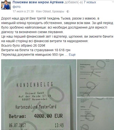 Мама мальчика Анна Бойченко просит о помощи и подчеркивает, что указанные реквизиты для переводов единственные, других – нет. А кроме того, просит не доверять никому, кто пишет от якобы ее имени с просьбой о помощи. Потому как ее нынешний аккаунт в Facebook – единственный.