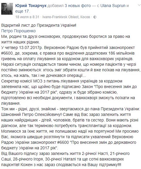 Один из таких случаев произошел несколько недель назад. Умер Андрей Владиченко, которому нужна была трансплантация костного мозга за рубежом. В Украине он был обречен: из-за бумажной волокиты он даже не успел стать в очередь на государственное финансирование такой операции. В Минздраве еще в марте закончились деньги, чтобы отправлять пациентов для трансплантаций за границу. Тем не менее, есть клиники, которым даже деньги не нужны – только гарантийное письмо от министерства. Получается, что в очереди за не выданными письмами пациенты просто умирают.