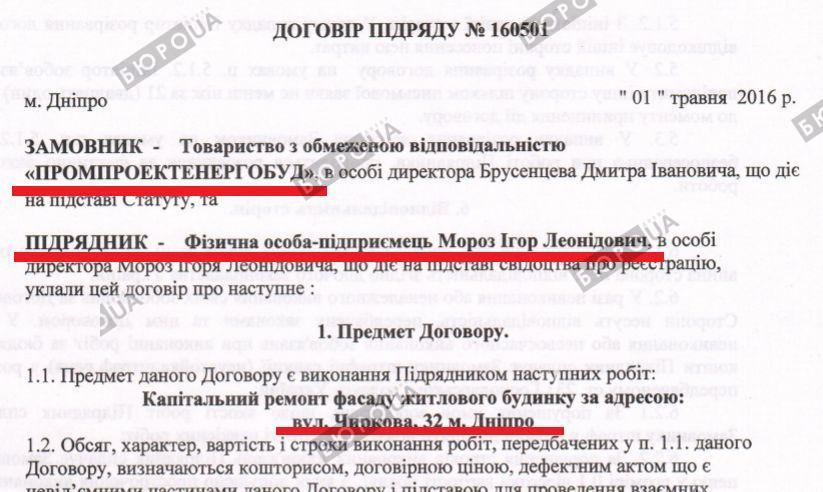 В частности, Игорь Мороз указал, что осуществлял капремонт фасада жилого дома на ул.Чиркова, 32 на общую сумму 416640 гривен.