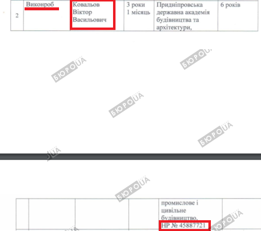В документах, которые подает на тендеры «Промпроектэнергобуд», мы нашли фамилии сотрудников компании, среди которых есть некий Виктор Васильевич Ковалев. В ООО Ковалев трудится прорабом. Учился он в ПГАСиА, получив диплом под номером 45887721 серии НР.