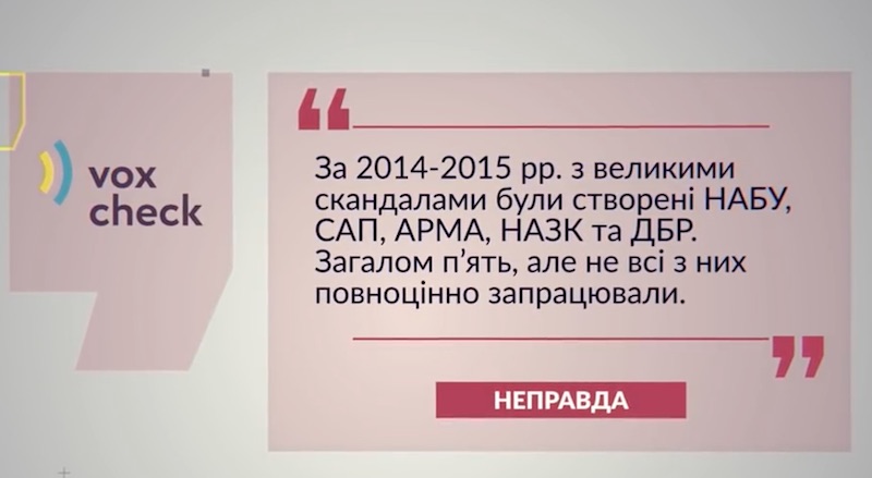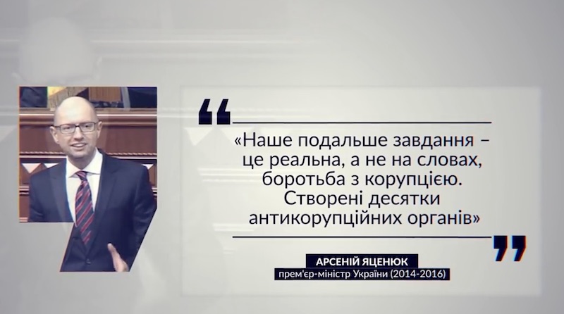 Нетерпимость к коррупции обещал Блок Петра Порошенко, а создать независимый антикоррупционный орган - «Народный фронт». Радикалы грозились посадить коррупцию на вила, а партия «Батькивщина» провозглашала максимально жесткую ответственность за коррупцию. Так звучали лозунги в предвыборных программах этих партий. За эти обещания они были избраны после бегства Януковича и его грузовиков. И они должны были выполнять эти обещания в течении последних трех лет.