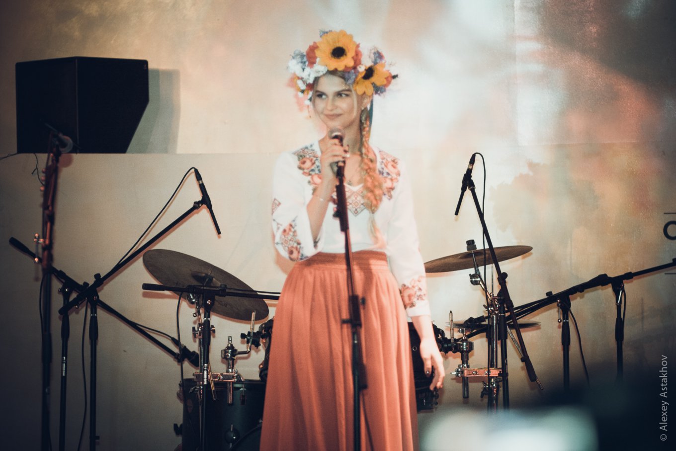 На пороге мероприятия гостей встречали Дед Мороз и Снегурочка (она же потом перевоплотилась в украинку в красивой вышиванке и с традиционным венком).