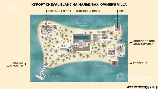 Крім основної вілли з басейном, на острові, де відпочивав президент Порошенко, в його розпорядженні були зона спа та приватний пляж