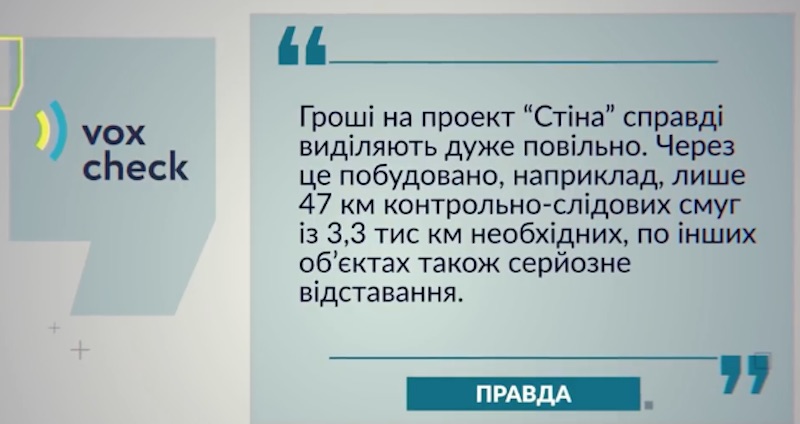Мы все помним обещания правительства построить стену на границе Украины с Россией. А результат – всего лишь дыра в стене. На что ушли сотни миллионов, и какое сооружение за такие большие деньги должно было стать надёжным? (Программа «Гра слiв» за 18 января 2018 года на «24 канале»).