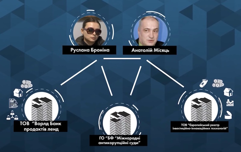 У Русланы Брониной есть бизнес-партнер Анатолий Месяц. Он является и совладельцем вышеназванных фирм, и одним из руководителей «Благотворительного фонда «Международные антикоррупционные суды». Также он подписывал скандальные письма.