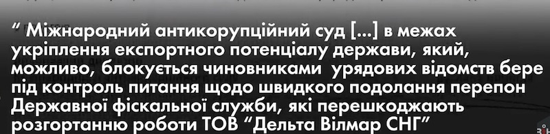 Полное название скандальной организации - общественная организация «Благотворительный фонд «Международные антикоррупционные суды». Эта организация не имеет ничего общего с антикоррупционным судом, о создании которого сейчас говорят в Украине. Общественная организация с сомнительным названием неутомимо рассылает негативные письма о деятельности представленных в Украине компаний в зарубежные органы, чтобы их дискредитировать. Уже есть 5-7 предприятий-экспортеров, которые с этим явлением столкнулись.