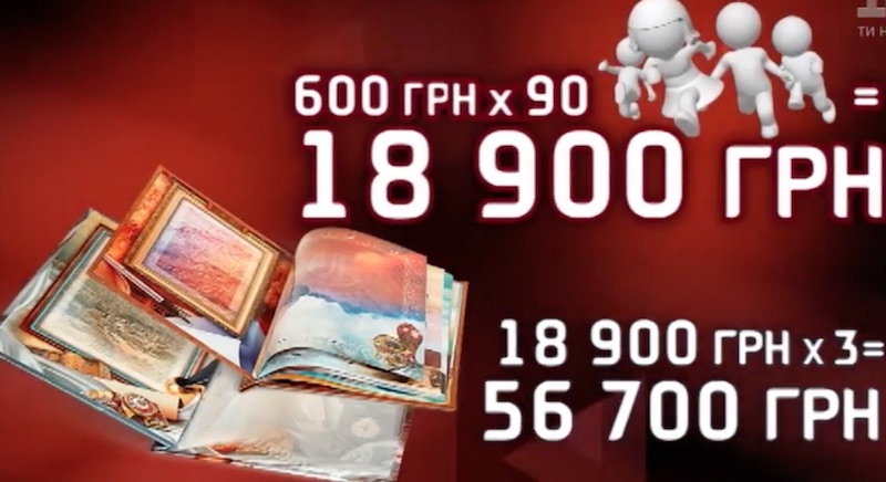 Средняя цена выпускного альбома – 600 гривен. На параллели в среднем по 3 класса, а это 90 учеников, и администрация только с одиннадцатых классов заработает почти 19 000 гривен. Если добавить девятые и четвертые классы, получается почти 60 тысяч гривен. Школа зарабатывает больше, чем сам фотограф.
