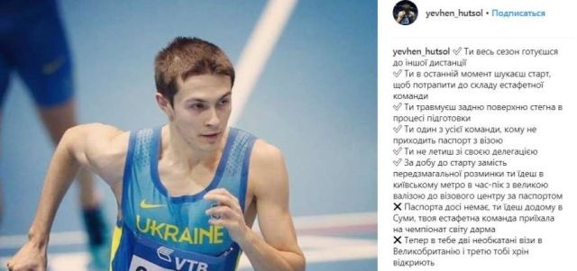 «Наскільки знаю, робили що могли. Прийшли документи на всіх крім Євгенія. Телефонували, писали, благали і федерація, і міністерство і в консульство і посольство, куди тільки можна було. Але британська віза для українців розглядається у Варшаві. І відповідь звідти була тільки одна — документи на розгляді, чекайте. Посольства — це окрема планета», - повідомив прес-аташе Федерації легкої атлетики України Олександр Даниленко.