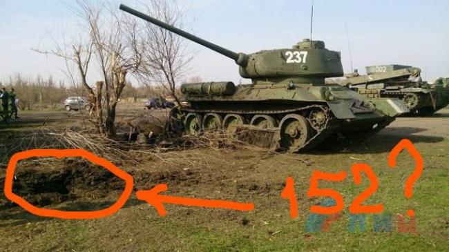 Техника террористов, подготавливаемая к так называемому параду, пострадала от «обстрела» укро-гаубицами 152 калибра, но пострадала только старая техника, танки времен Второй мировой войны, снятые с памятников ОРЛО. В новые боевые машины, снаряды не попали. Чудеса? Постановка!