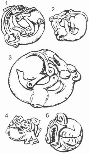 Когда окончания рогов оленя или его лопатка преобразовывается в птичью голову – этотоже не просто так, это расширение смысла, возможно усиление этого смысла в какую-то определённую сторону. В то же время можно найти символы, когда лапы хищника преобразуются в птичьи головы.