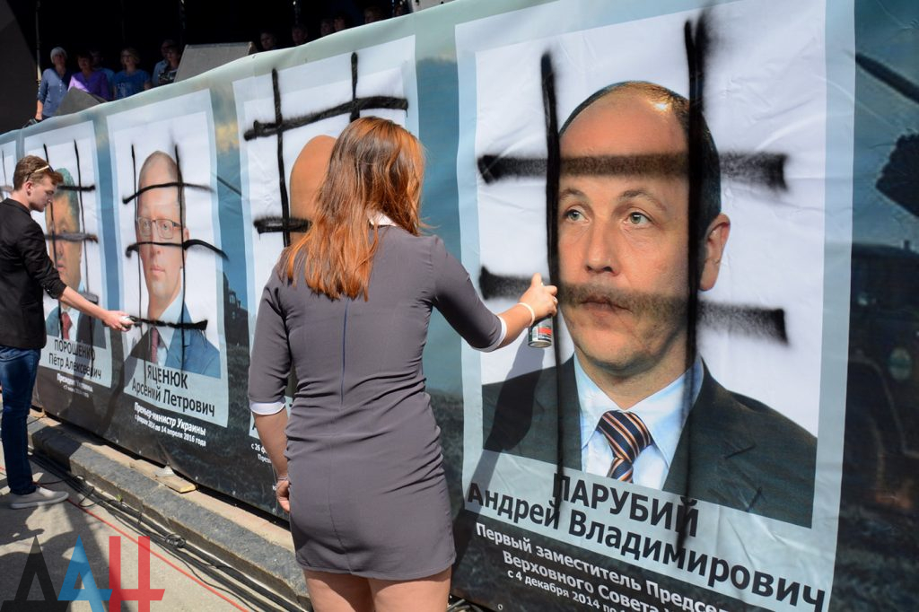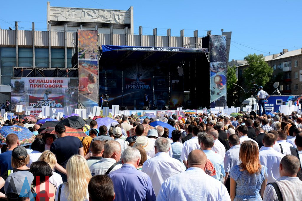 Апофеоз "трибунала" наступил 22 июня (годовщина начала Великой отечественной войны очевидно была выбрана не случайно): в Луганске на Театральной площади (видимо, бессознательно подчеркивая всю абсурдность действия) сепаратисты огласили обвинительный вердикт Порошенко и всей "киевской клике", признав "хунту" виновной по 24 пунктам статей УК Украины.