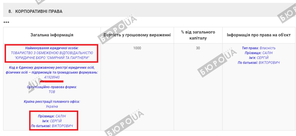Свою деятельность в КП Салин еще до недавнего времени совмещал с предпринимательством. Вместе с Сергеем Смирным он выступал соучредителем в ООО «ЮБ «Смирный и партнеры». Данную информацию Салин указал в своей декларации.