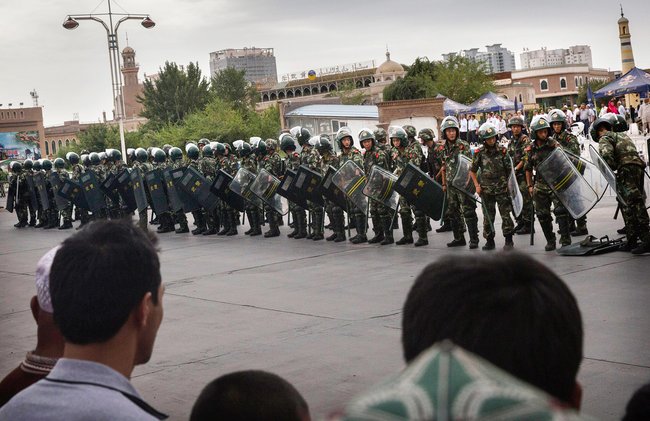Китайские солдаты окружают центральную мечеть Кашгара после убийства имама, 30 июля 2014 года, Kevin Frayer / Getty Images