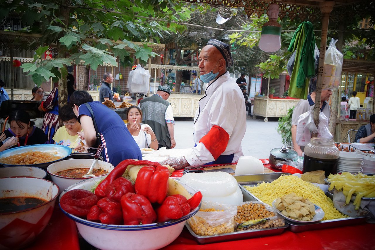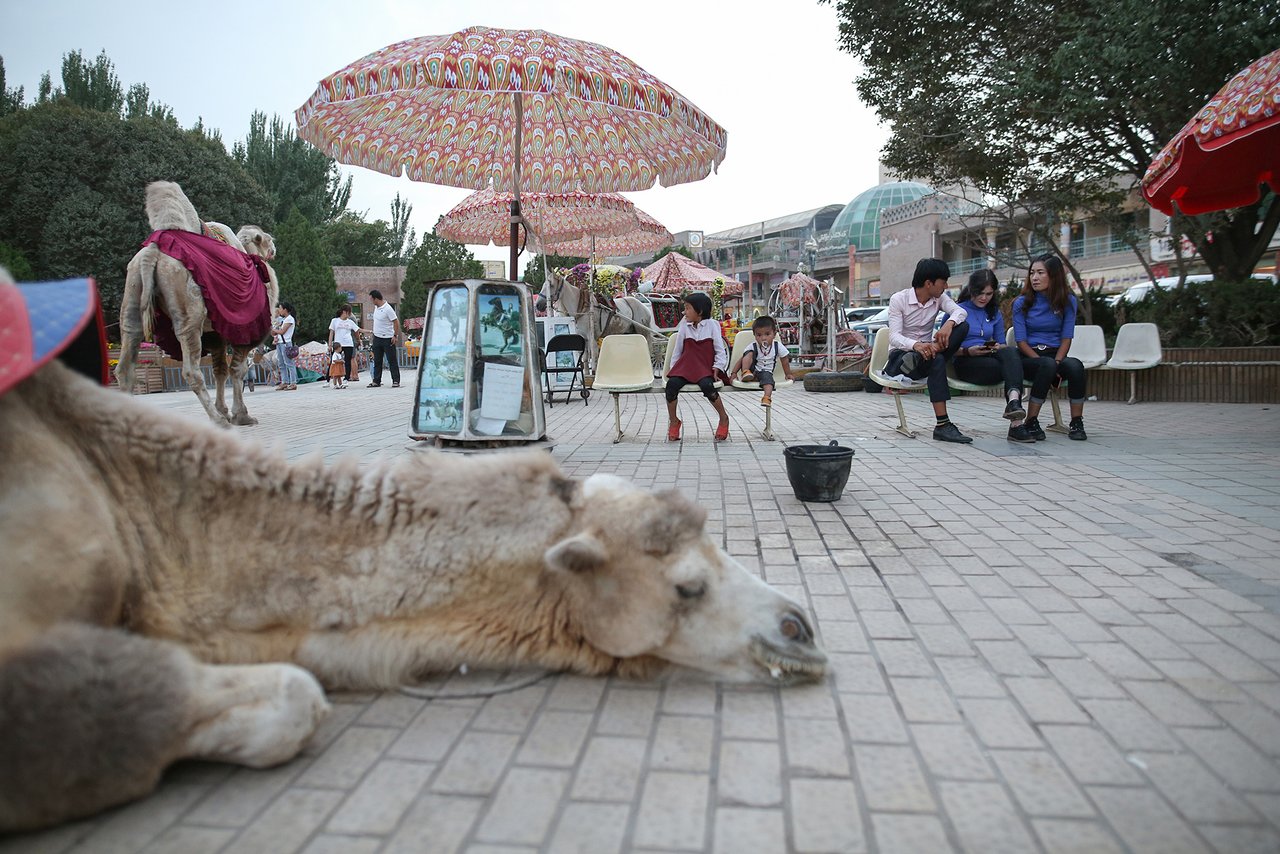 Самой же главной утратой стала исчезнувшая уличная жизнь. Пропали кузнецы и зазывалы, нет больше плотников, выстругивавших резные бутыли из тыкв, исчезли уличные торговцы и запряженные осликами тележки, игравшие роль городских такси. Старики в тюбетейках по-прежнему чинно пьют чай из пиал на усаженных цветами аллеях, но вид у стариков потерянный, и количество фотографирующих их китайских туристов значительно превосходит число их самих. На оставшемся на старом месте продуктовом рынке по-прежнему торгуют лапшой и бараньими головами, только покупатели теперь — сплошь китайцы, а на рукавах уйгурских продавцов появились красные повязки с желтыми иероглифами, свидетельствующие, что они получили государственную лицензию.