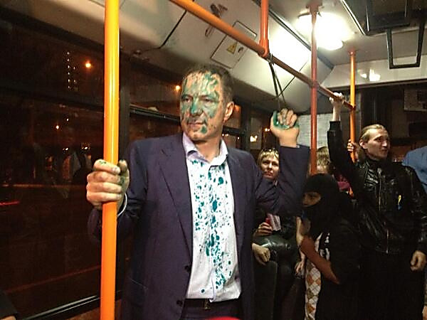 Из видео инцидента следует, что обуздать толпу ему не удалось. И фактически поддавшись на уговоры митингующих, Рудьковский бросил в здание посольства протянутый ему одной из женщин кусок брущатки. После этого его облили зеленкой, и не дали покинуть место инцидента на машине.