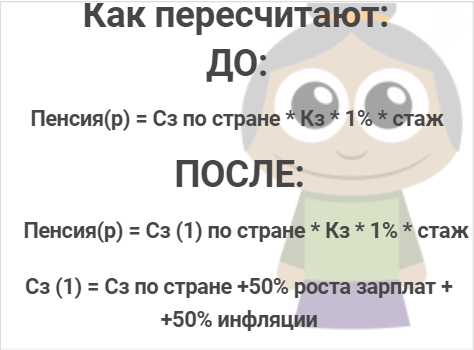 При перерасчете сотрудники Пенсионного фонда повысят среднюю зарплату в 5,4 тыс. на 50% средней инфляции и 50% от роста зарплат на три года. Предположим, что инфляция в Украине будет на уровне 10%, а средний рост заработных плат составит 18%. В таком случае зарплату в формуле увеличат на 14% (10%/2 + 18%/2) – до 6,1 тыс. грн. В то время как общий размер пенсии после перерасчета составит 2,1 тыс. грн. То есть прибавка составит около 300 грн. Для сравнения, в этом году пенсии украинцев повышали дважды, и оба раза прибавка составила всего лишь около 60 грн.