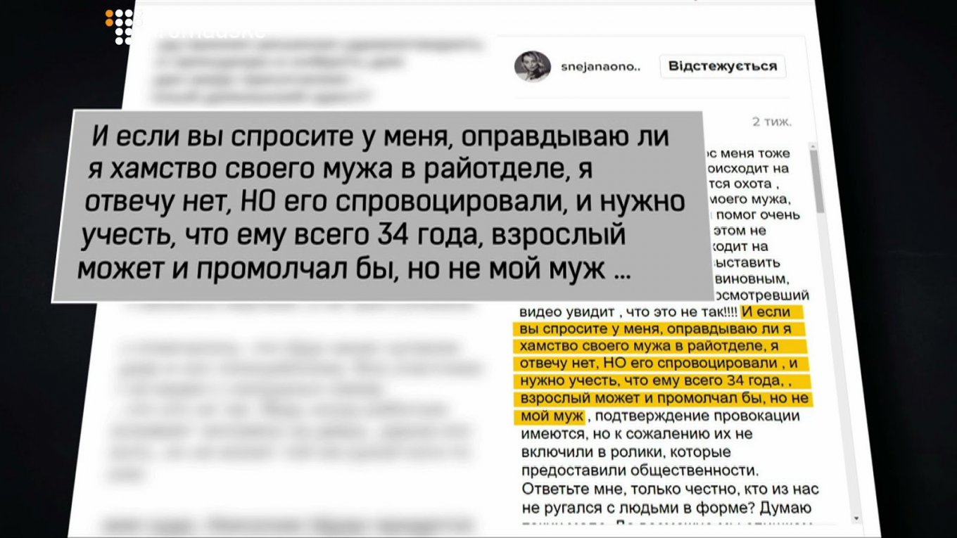 «И если вы спросите у меня, оправдываю ли я хамство мужа в райотделе, я отвечу — нет, но его спровоцировали, и надо учесть, что ему всего 34 года, взрослый, возможно, и промолчал бы, но не мой муж», — написала она.