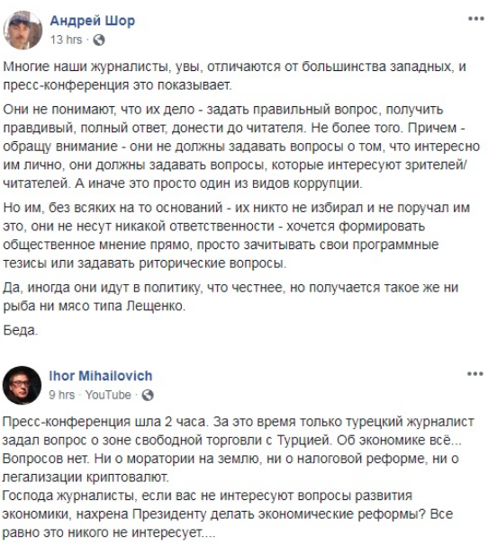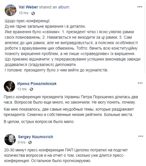В целом пресс-конференция вызвала разнообразную реакцию. Большинство лидеров общественного мнения уверены, что ее проведение — положительное событие. Однако остались вопросы к ее организации.