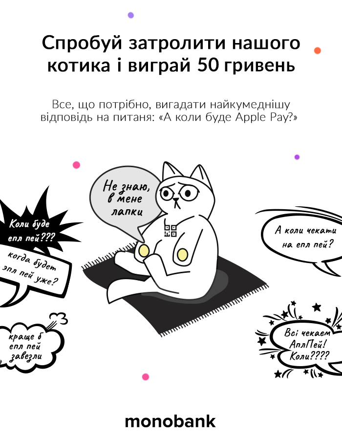 - monobank одним из первых запустил работу с платежным сервисом Apple Pay.