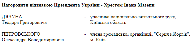 Скриншот указа Порошенко "О награждении государственными наградами Украины по случаю Дня независимости Украины"