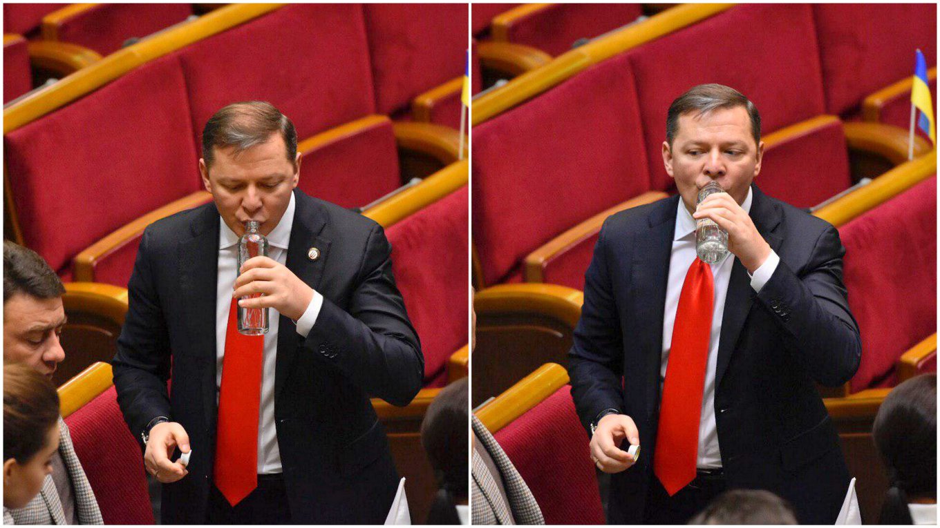 Олег Ляшко после выступления налегал на минеральную воду, фото: Изым Каумбаев, "Страна"