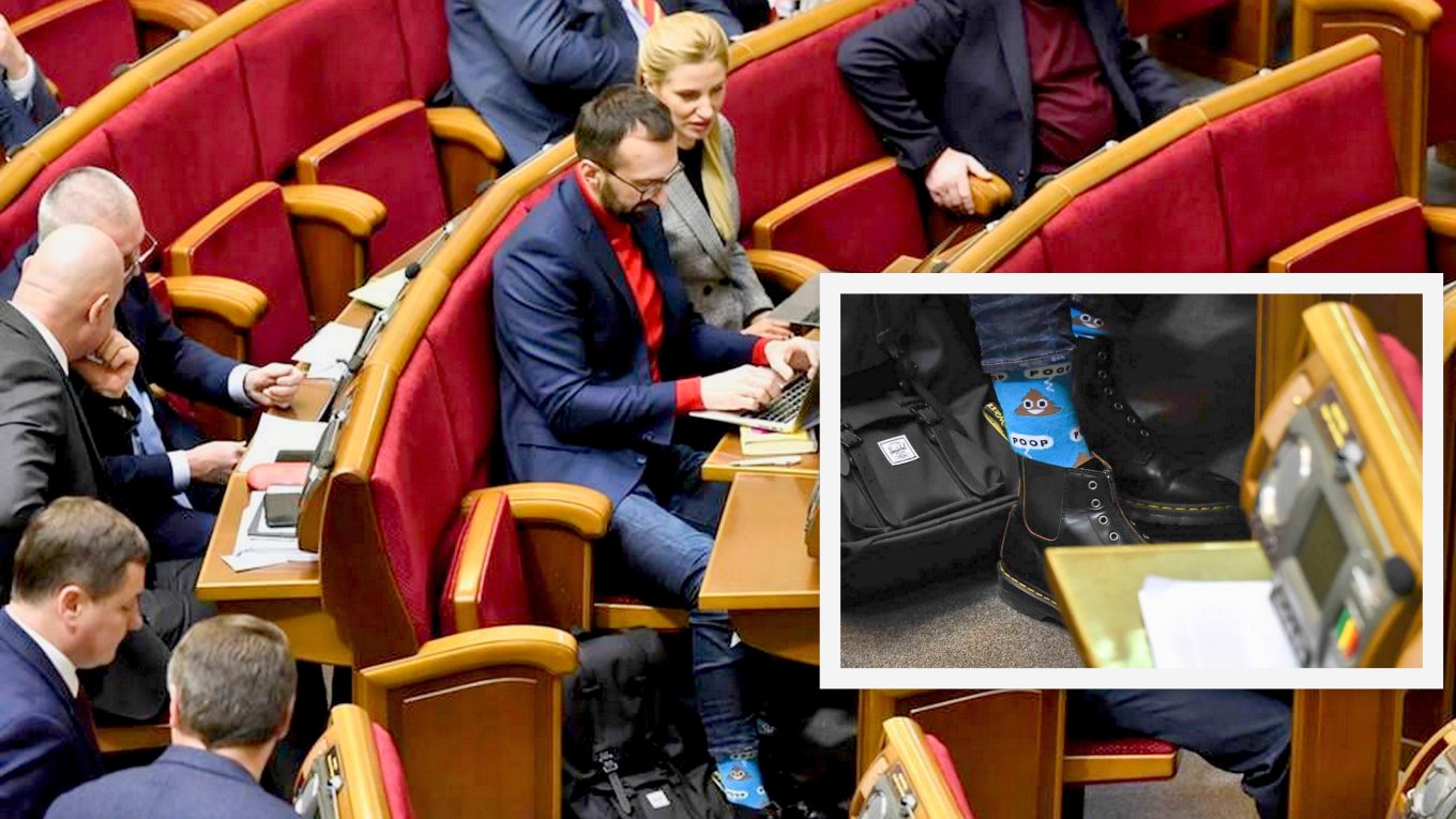 Депутат Сергей Лещенко (БПП) пришел на заседание Рады в необычных носках – с эмодзи "какашка". Фото опубликовал на своей странице в Facebook журналист Богдан Бортаков, а нардеп ответил в комментариях: "На носках – то, что думаю о ситуации в стране".