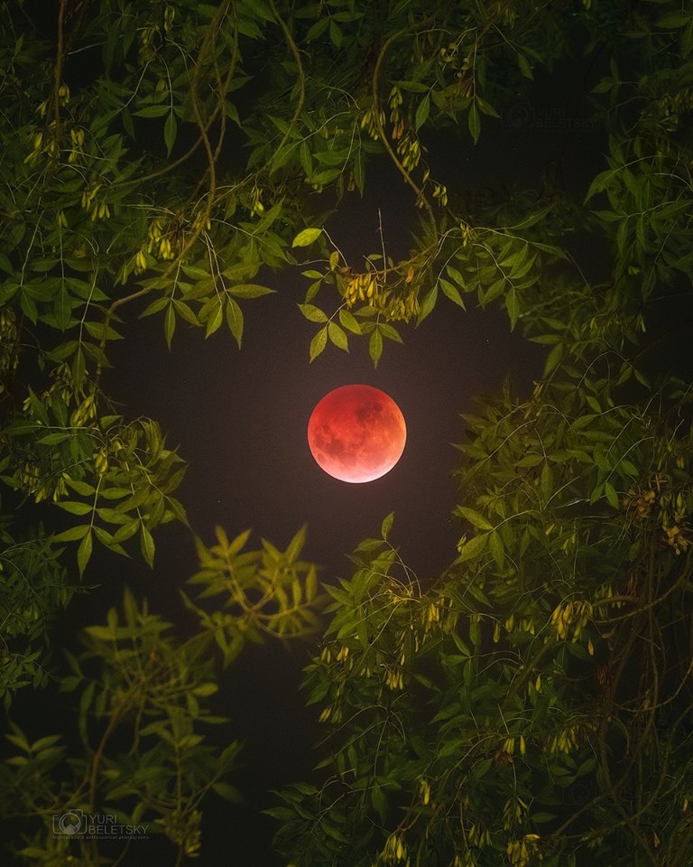 Подсвеченный слабым светом "кровавой" Луны кроны деревьев производят просто чарующее впечатление.