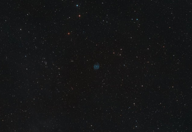 Насколько туманность Abell 36 сложно наблюдать, можно понять по снимку с большим полем. Чтобы ее увидеть, нужно внимательно приглядеться.
