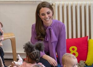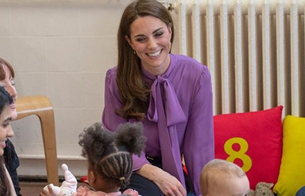 Кейт посещала центр, чтобы узнать больше о поддержке, предлагаемой молодежи и их семьям через Lambeth Early Action Partnership (LEAP). Одетая в фиолетовую блузку Gucci и черные широкие брюки Jigsaw, Кейт выглядела готовой к работе.