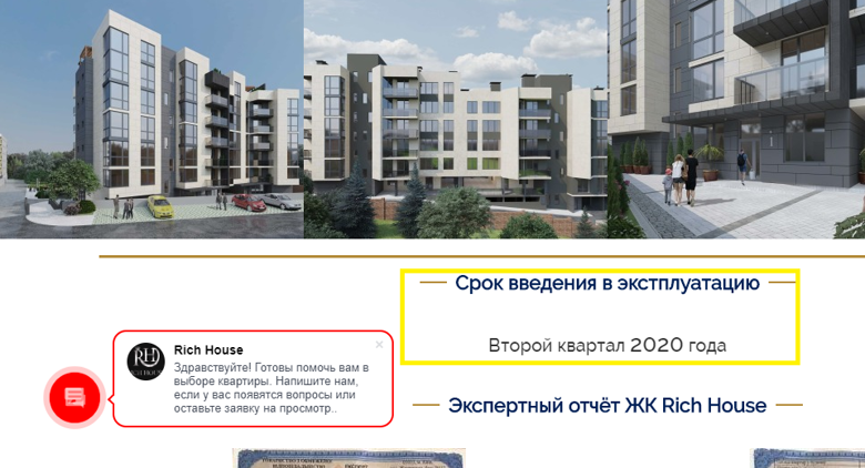 Скриншот сайта ЖК Rich House, сделанный в феврале 2019 года