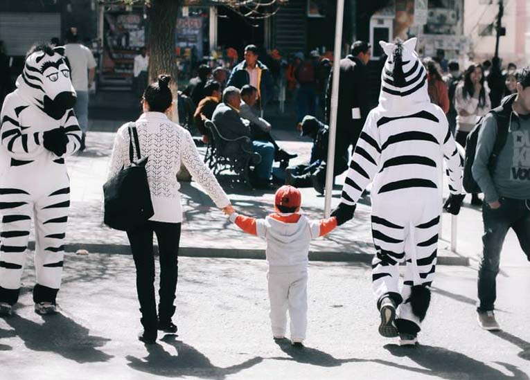 На улицах Ла-Паса практически нет светофоров и тротуаров, поэтому дорожное движение здесь беспорядочное. Для приезжих переход дороги — настоящее испытание. Благо в Боливии есть государственная программа по обучению дорожному движению. Этим занимаются милые и смешные люди-зебры, которых очень любят боливийцы, особенно дети.