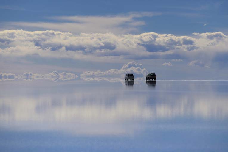 Во время дождя на солевой поверхности образуется тонкий слой воды, и равнина становится огромнейшим природным зеркалом. Невероятное зрелище!