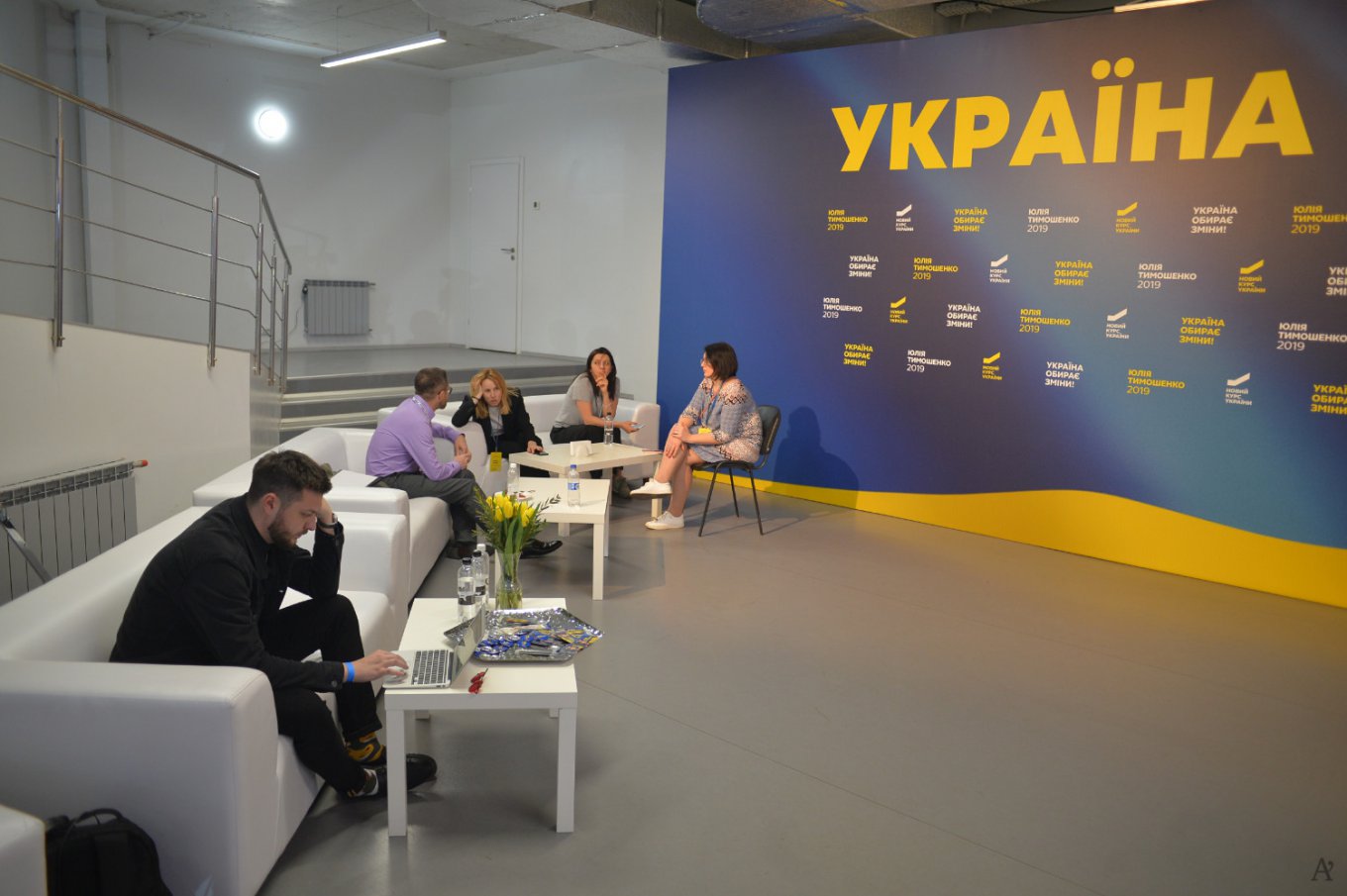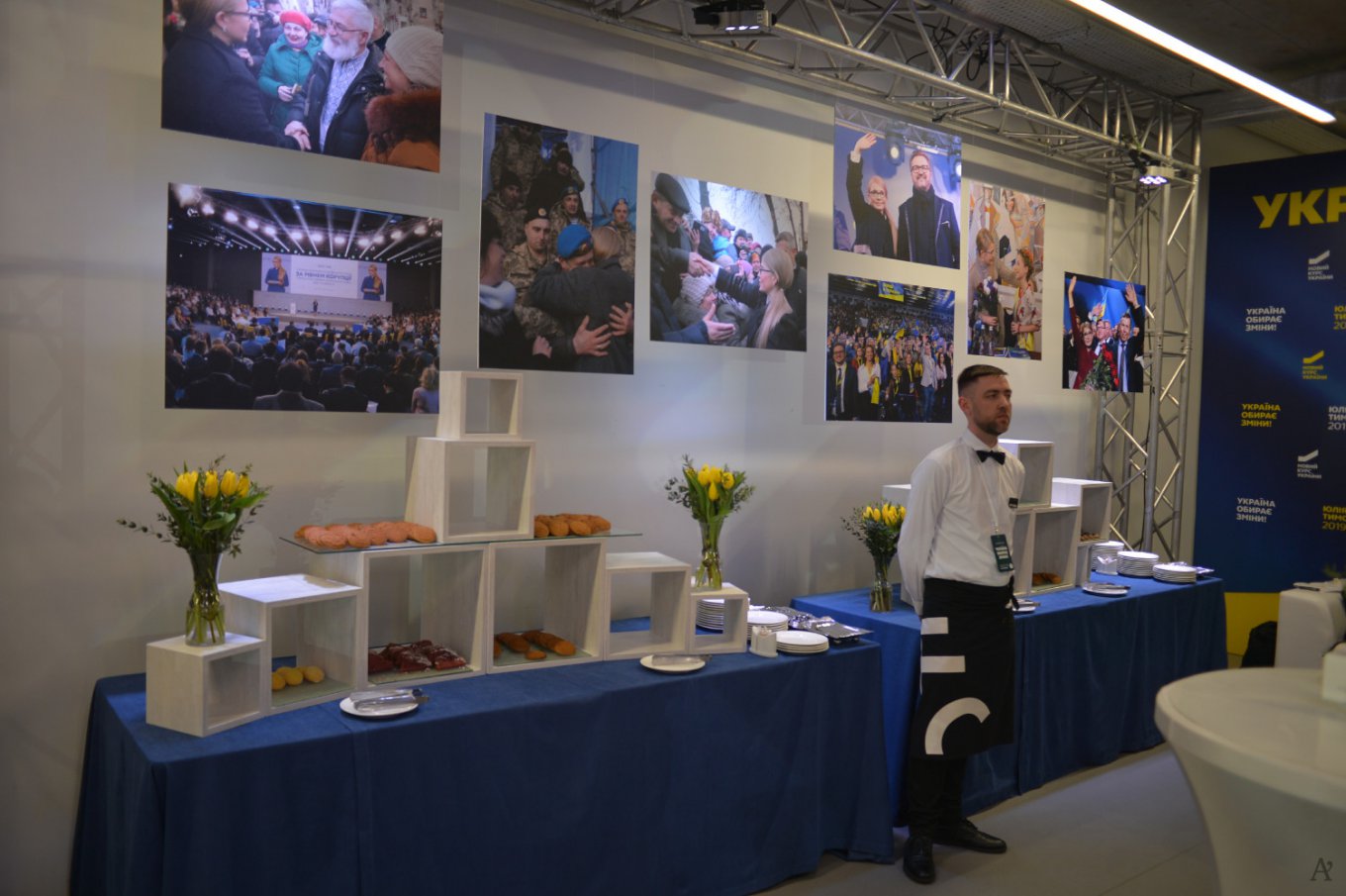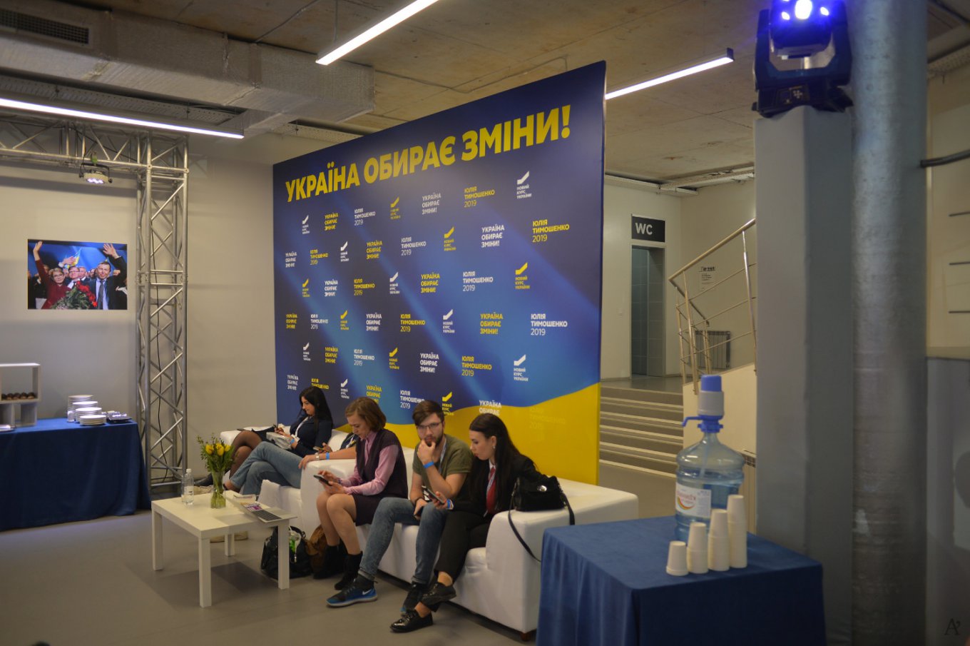 Команда Тимошенко уже с первой половины дня стала сообщать о нарушениях, подкупе, причем их, по данным соратников ЮВТ, было много. Несмотря на то, что на эту кампанию Юлия Владимировна возлагала большие надежды, никакой особенной помпезности в штабе не наблюдалось. Гостей угощали овсяным печеньем и кексами, алкоголем, в отличии от штаба Зеленского, решили не баловать, звучали ремиксы на украинские народные песни, а в зале наблюдался минимум штабистов ЮВТ.