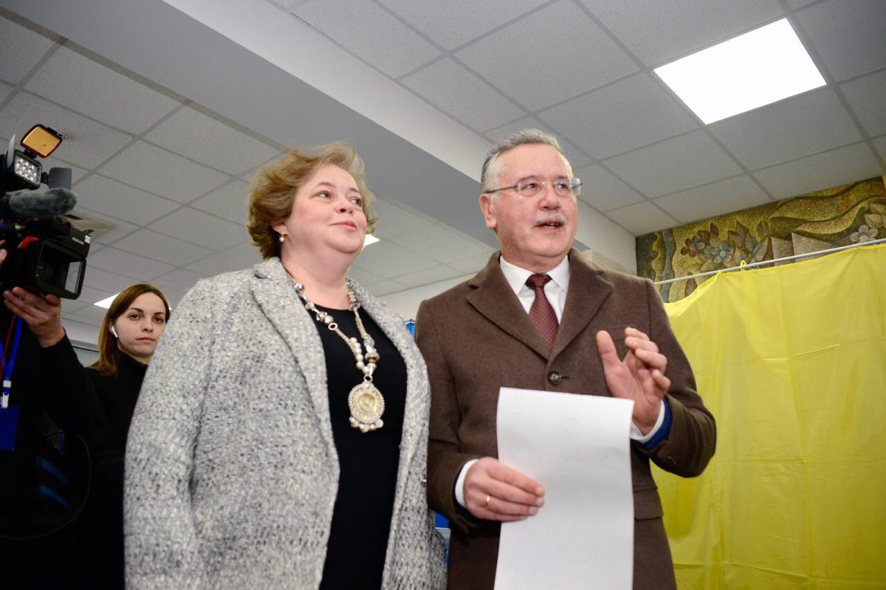 Анатолий Гриценко проголосовал около полудня. При этом с ним приключилось небольшое недоразумение. Точнее, оно произошло с его супругой, известной журналисткой Юлией Мостовой - она не нашла себя в списках избирателей, а потому не смогла проголосовать.