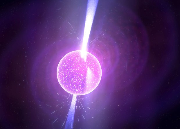 Нейтронные звезды обладают мощнейшим магнитным полем и очень быстро вращаются. В результате над магнитными полюсами возникают узкие конусы радиоизлучения. Если наблюдателю посчастливится попасть в такой конус, он зафиксирует сигнал.