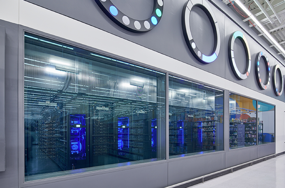 Машинное зрение в IRL умеет делать всё то же, что и в Amazon Go. Компьютер видит, что за продукт лежит на полке, различает его количество, проверяет скорость, с которой он уходит, делает проекции (хватит ли до конца дня?). Камеры и другие датчики магазина вырабатывают 1,6 ТБ данных в секунду. Чтобы анализировать такой объем информации, в том же помещении расположен дата-центр с 100 серверами. Он защищен стеклом, подсвечивается синим и выставлен на обозрение публики.