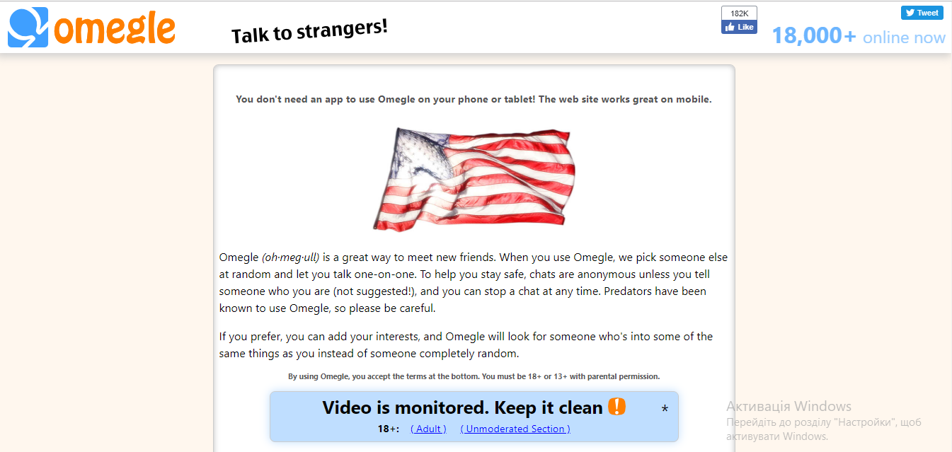Но в отличие от большинства сервисов для встреч с незнакомцами Omegle не требует регистрации, подтверждения возраста, хоть каких-нибудь усилий для начала работы с сервисом. И хотя на сайте написано, что видеочаты модерируются, сервис предупреждает, что некоторые пользователи все равно могут вести себя неприлично во время видеосвязи. К тому же, у Omegle есть немодерируемый раздел, который ведет на сайт с прямым трансляциями мастурбаций и секса.