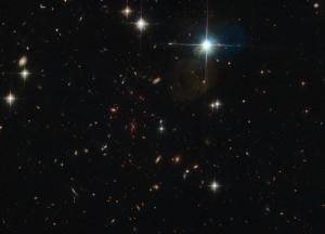 Гравитационная линза может не только исказить форму далекого объекта, она может многократно усилить его яркость. И благодаря такому усилению, Хаббл» сумел не просто сфотографировать древнейшие галактики, Астрономам галактик удалось рассмотреть некоторые особенности структуры одной из них (SPT0615-JD). Космическому телескопу Хаббл и раньше удавалось получать изображения протогалактик, но они выглядели просто размытыми красными точками.