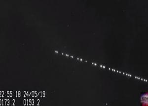 "Спутниковый поезд" Илона Маска на видео. Неподвижные точки в поле зрения – звезды.