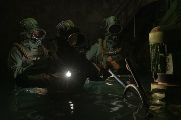 Но в реальности "чернобыльские водолазы" Алексей Ананенко, Валерий Беспалов и Борис Баранов не были добровольцами. В сериале у них костюмы для подводного плавания, в жизни - прозрачный пластиковый гидрокостюм с открытой головой.