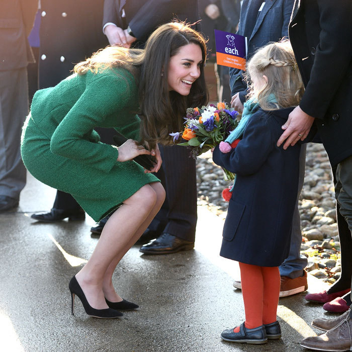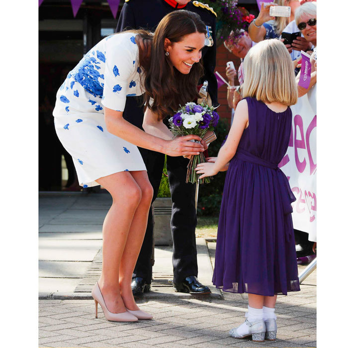 Кейт выглядела необычайно шикарно, когда получала цветы от Эви Фармер во время посещения хосписа в Лутоне.