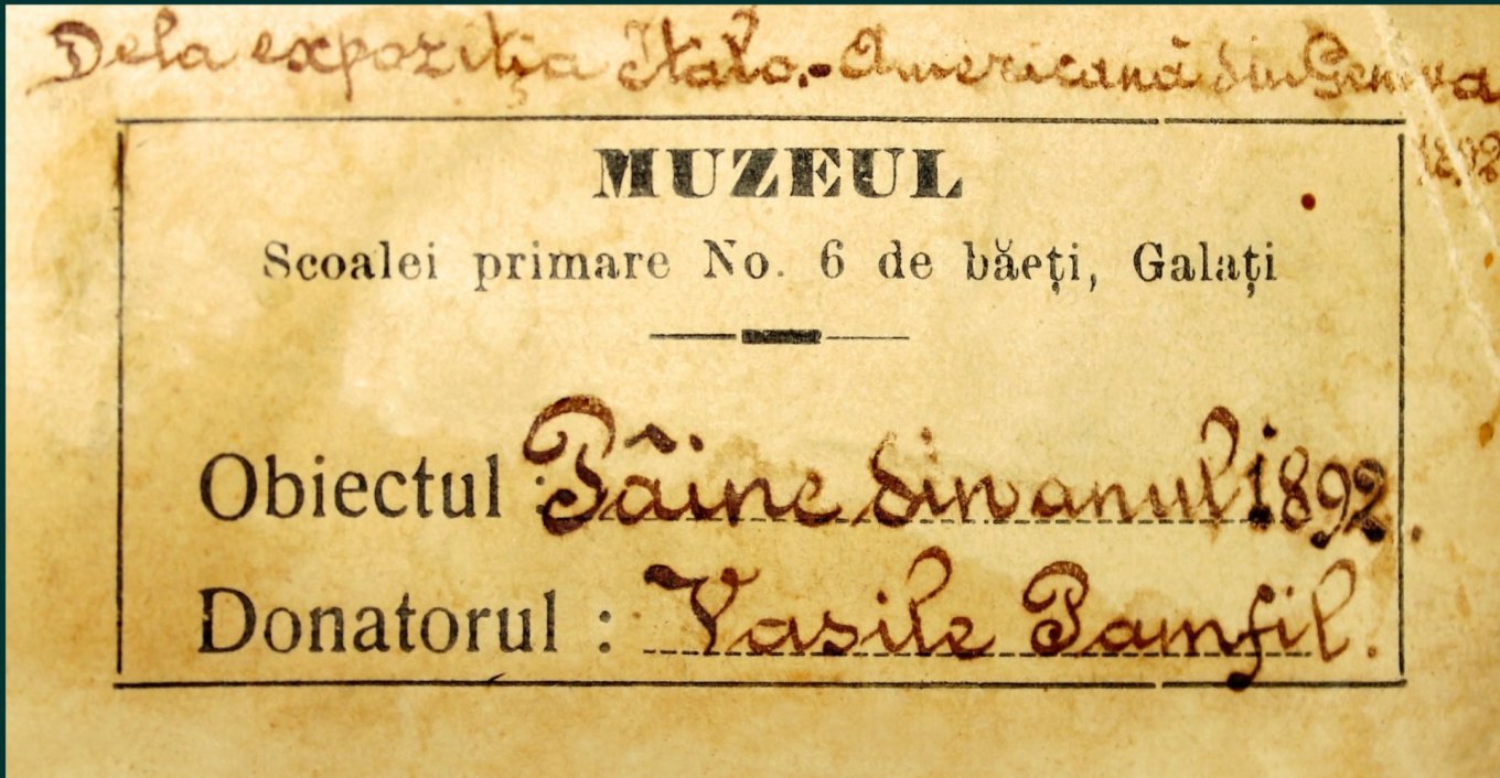 «Из благодарственного письма Павла Паши (меценат музея) мы узнаем, что хлеб хранился в стеклянном ящике, на котором мы также обнаружили оригинальную этикетку, написанную самим Павлом Пашей», — рассказывает директор Исторического музея в Галаце Кристиан Кэлдэрару.