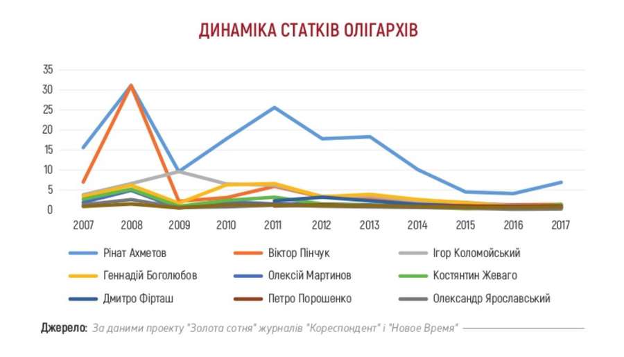 – Взагалі рахували не ми. Був такий проєкт: «Золота сотня». Колись його робив журнал «Кореспондент», а зараз продовжує «Новое время». Forbes, робив. Але традиційно є 10 людей, які ніколи не випадали з двадцятки найбагатших людей. Тобто незалежно від криз, ці люди залишалися у двадцятці найбагатших людей України впродовж уже 15-ти років. Тобто цих людей можна назвати стабільними олігархами.