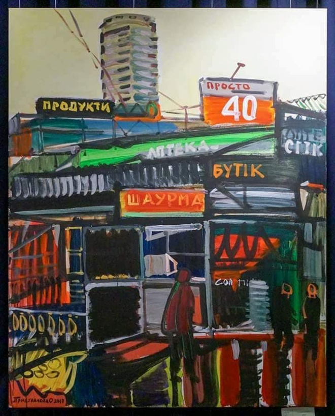 Как только снимки картин попали в соцсети, наибольший интерес вызвали два сюжета: пингвины за трибуной в Верховной Раде и ларек с шаурмой на киевской улице.